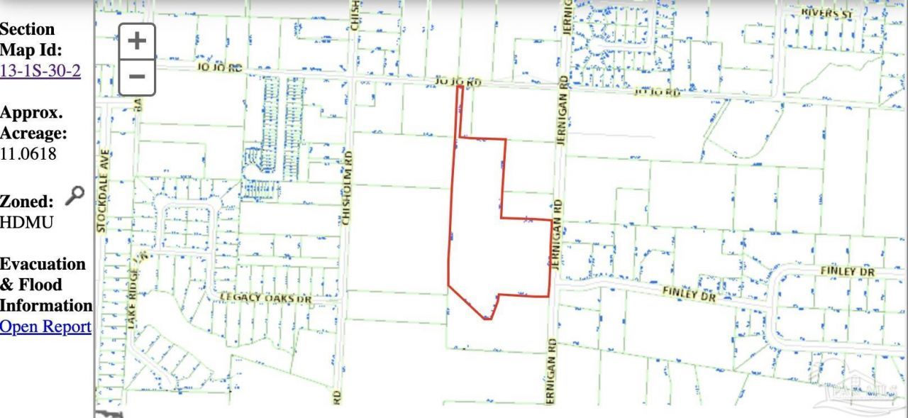 This property, spanning approximately 11.0618 acres, is zoned HDMU, 25 units per acrea, according to the Escambia County Property Appraiser website, making it suitable for development into apartments, condos, or townhouses. The site features 1.27 acres of wetlands, much of which comprises a lake along the southern boundary, providing natural buffers along with the wetlands on the western boundary. Key features of the property include: 458 feet of frontage along Jernigan Road 30 feet of frontage along Jo Jo Road Proximity to various amenities and landmarks, including: Approximately 2 miles from the University of West Florida (UWF) Close...read more